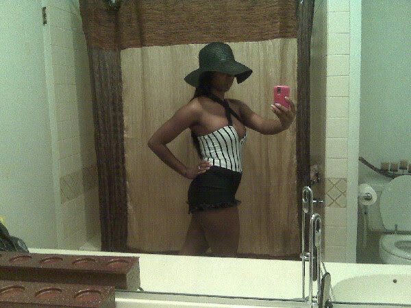 One Piece Gilbeau Beach Fit (Blk & Wht stripe tube style top with crossing strap & blk short shorts bottom with ruffles)